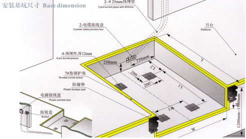 ●預埋管在地坑外的走向,由客戶視按鈕安裝位置,動力電源接線盒位置決定管路走向。